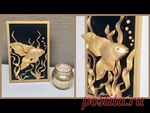 Интерьерная картина золотая рыбка своими руками/Декор для дома/Подарок рыбаку/Поделки для школы/DIY