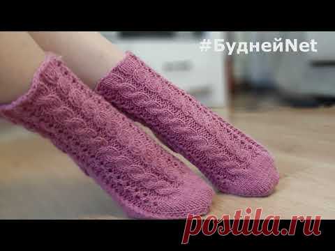 КРАСИВЫЕ носки с ажуром и косами двумя спицами Подробное видео как связать носки спицами БуднейNet
