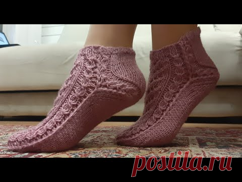 ❤️КРАСИВЫЕ АЖУРНЫЕ НОСКИ👠 двумя спицами БЕЗ ШВА👍 ПРОСТЫЕ НОСКИ СПИЦАМИ🎀