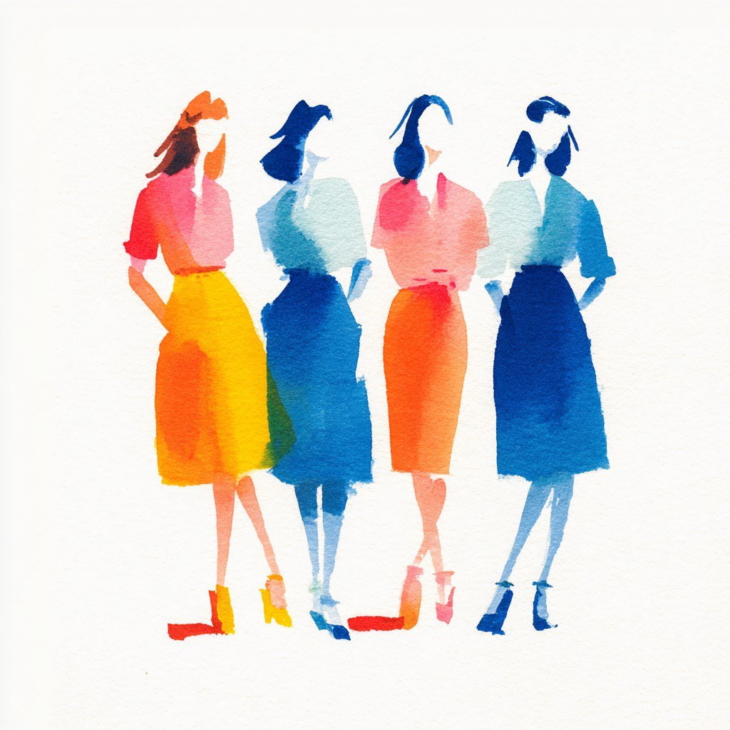Яркие краски и простота: акварельный этюд в стиле наивного фольклора с четырьмя девушками. Генерация из нейросети Midjourney - Midjourney примеры промтов - Форум ИИ о нейросетях - Yes Ai