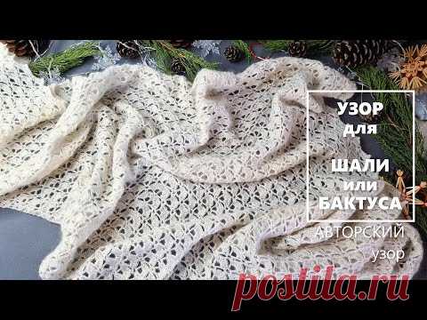 👍 АВТОРСКИЙ Узор для БАКТУСА или ШАЛИ из КОЗЬЕГО ПУХА крючком. Подробный МК