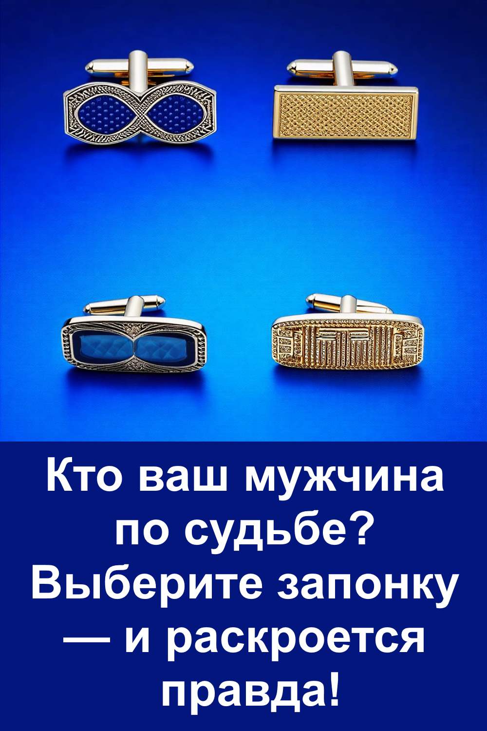 Выберите одну из четырёх мужских запонок и узнайте, какой тип мужчины вам предназначен судьбой. Этот простой, но точный тест поможет заглянуть вглубь себя и понять, с кем вы могли бы быть по-настоящему счастливы. Надёжный, романтичный, рассудительный или харизматичный — результат может удивить!