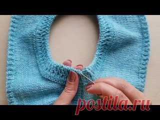 Обвязка горловины (ложная кеттлевка) + закрытие петель иглой по кругу.