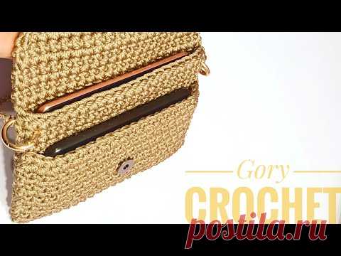 Сумка крючком с передним карманом, отличный дизайн, легко и просто, из цельного куска