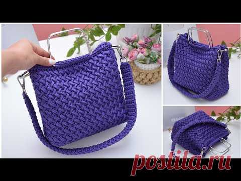Вязаная крючком сумочка Тоут с узором Елочка. Круговое вязание узора