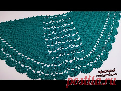 جديد و حصرى شال كروشيه نصف دائرى بغرزة المروحة مع طريقة تكبيره Crocheted Shawl