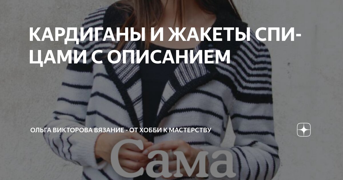 КАРДИГАНЫ И ЖАКЕТЫ СПИЦАМИ С ОПИСАНИЕМ Статья автора «Ольга Викторова Вязание - от хобби к мастерству» в Дзене ✍: 1. Кардиган с рукавами "буф" Примечание: в узоре двойная лицевая - это лицевая петля в петлю нижнего ряда 2.