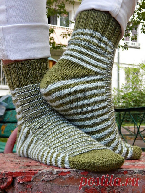 "Гусеница” – полосатые носки от мыска с клином подъема стопы Прелесть именно этих носков – в них нет раппорта узора вширину. Вязать их можно из пряжи любой толщины на любых спицах и набирать любое количество петель кратное хоть двум петлям, хоть трём петлям, да хоть бы и четырём петлям. Нужно просто заранее определить плотность вязания лицевой...