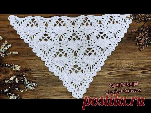 كروشيه شال القلوب بشكل رقيق ومميز يصلح (سكارف ، رابطة شعر) Crocheted Shawl