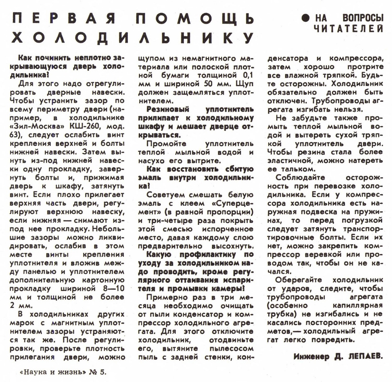 Первая помощь холодильнику