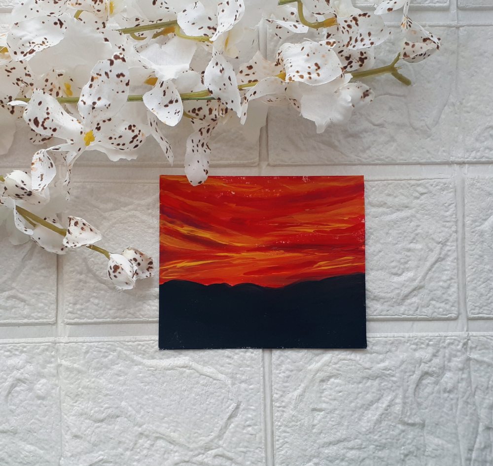 Закат в горах, миниатюра акрилом. Пишите для заказа сообщение.