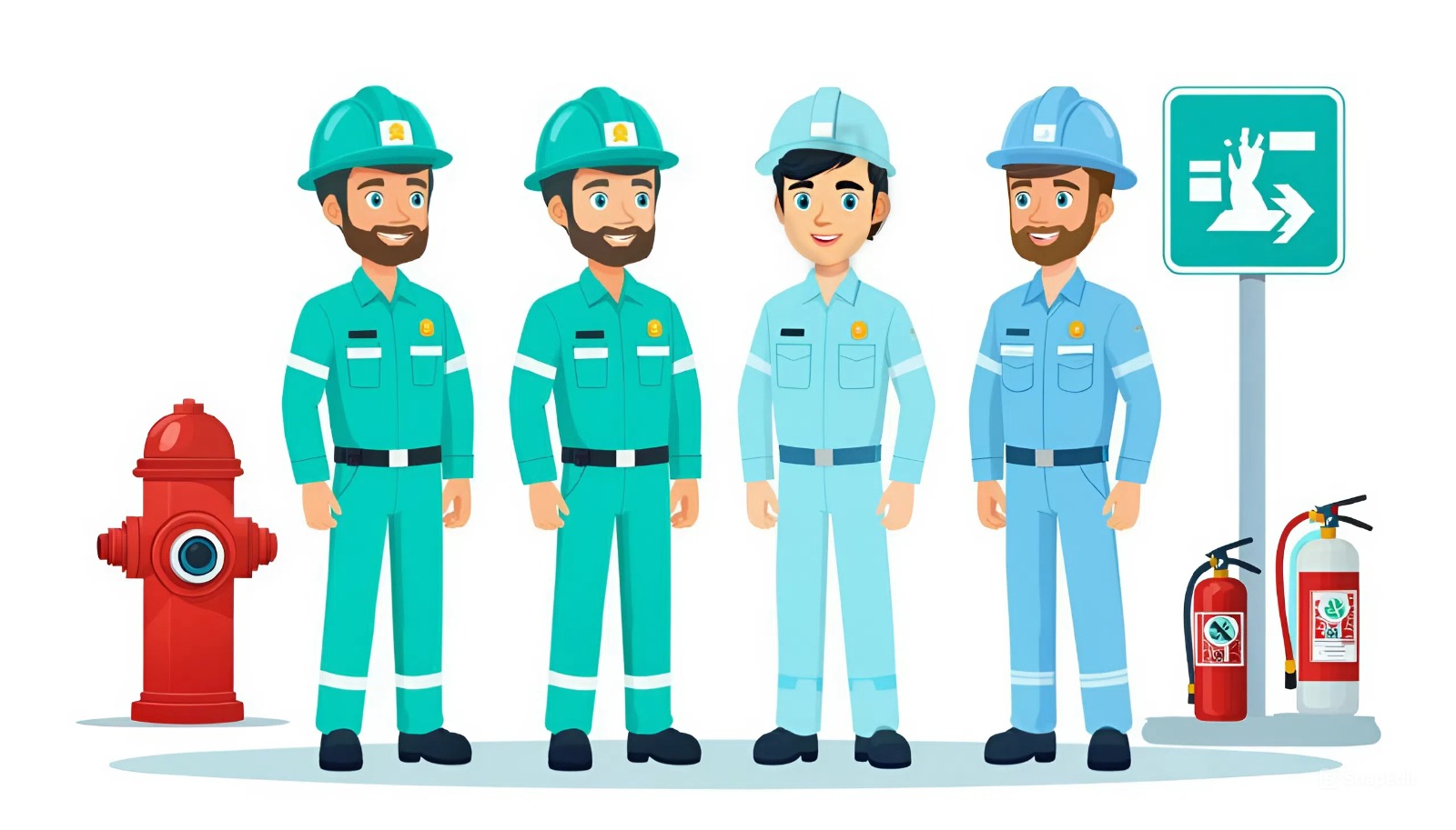 Светлое утро, почти безоблачное, встречает нас с лучезарной надеждой на безопасность и порядок. Четверо доблестных стражей индустриального мира в ярких зелёных и небесно-голубых формах стоят у пожарного гидранта, будто герои из комиксов, готовые сражаться с огнём и хаосом. Улыбающиеся лица, застывшие в бесстрашии, навевают мысли о том, что даже в море бетона и стали есть место доброте и дружелюбному напоминанию, как держать в руках безопасность. Знаки светофоров и осторожные огнетушители добавляют жизни городской симфонии, нашёптывая о том, что порядок и дисциплина прячутся в простой мудрости повседневного труда. Надпись «postila.ru» тут словно голос города, стараясь слиться с городской суетой, быть мостом между гудением улиц и тихими мыслями этих стражей. Персонажи оживают в нашем воображении, скрывая в себе глубокие рассказы о мужестве и профессионализме.
