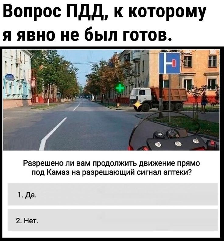 Закат сцены на городской улице, где прозрачно-тонкий свет связывается с контрастной уличной палитрой. Среди здания, словно припорошенные вязанкой осенних листьев, чутко виднеются аристократические контуры Камаза, как величественные кочегары прошлого. Вопрос, задающий непосильное испытание, прокладывает невидимые линии между правилом и неожиданностью. Аптечный крест мерцает робким зелёным светом, похожим на ковчег, давший последний сигнал застывшему в изумлении путнику. Словно старый, добрый Сагаан, стоящий на сцене бессловесной драмы ПДД, шепчет загадку человеческого существования: когда всё необъяснимое становится смешным, и безмолвное приобретает форму диалога. В этой картине есть нечто театральное, как у Чехова, будто ускользающее от самого себя. Вот он — сюрреализм наших дорог.