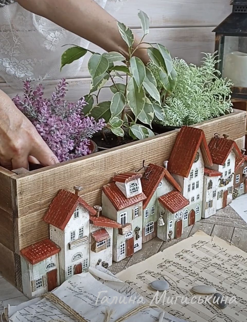 На деревянной сцене, где солнечные лучи тихо танцуют, словно незримые музыканты, расставлены домики с крышей цвета заката, как будто они вынырнули из страниц сказки братьев Гримм. Рядом пушистые кусты, стремящиеся к свету, как туманные облака грёз. Руки заботливо касаются этих живых мозаик, словно дирижируют тихим симфоническим оркестром природы. Всё это — воплощение тихой гармонии: оазис покоя среди суеты, где жизнь вершит свои маленькие чудеса. Бумажные свитки раскрывают тайное знание, каждая нота — как поворот на улочке городка. Это пасторальный гимн жизни, где в уголках деревянных домов прячутся истории. Вся эта сцена подобна живой открытке вечности, где прошлое и настоящее сливаются вместе.