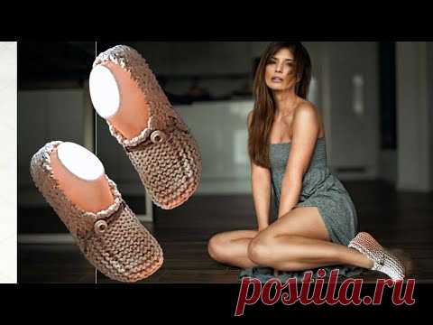 Вязаные тапочки двумя спицами. Просто и бстро.#2025.