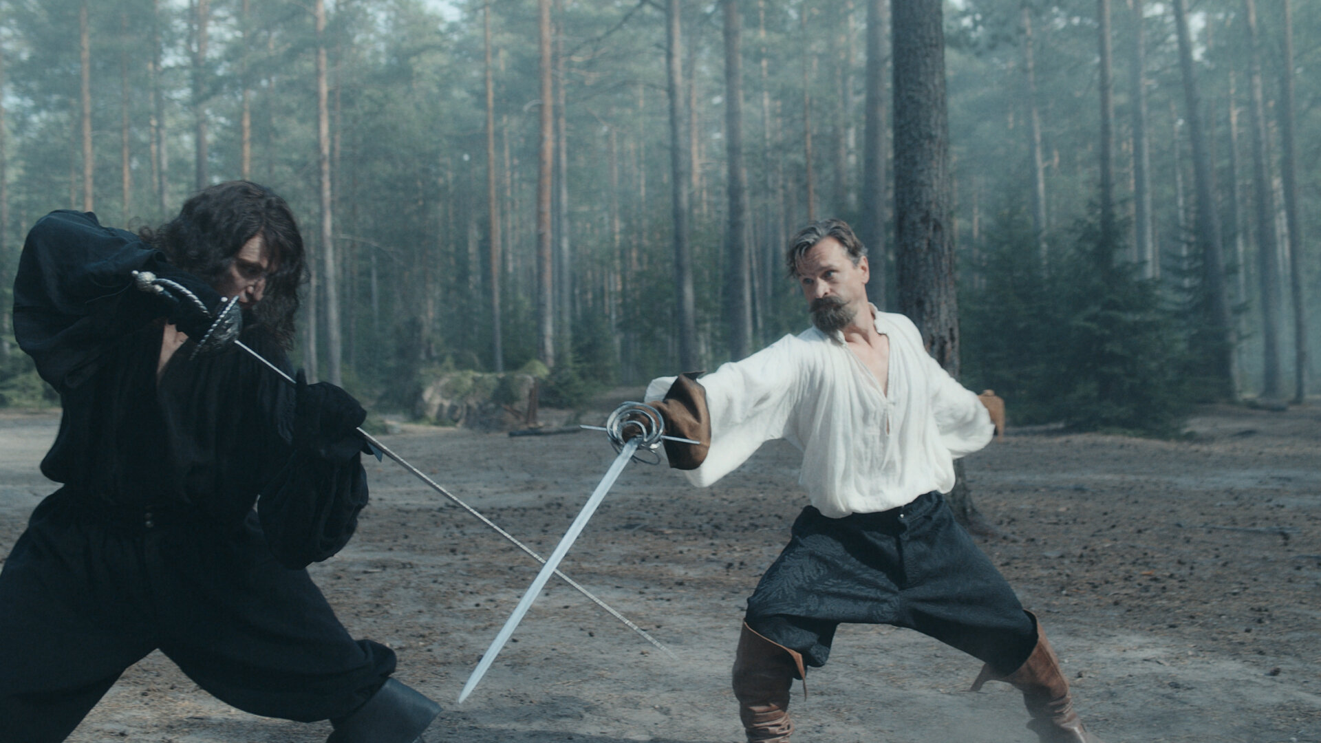 Серый лес молчаливо наблюдает, как два воина, будто вышедшие из туманных глубин времени, сходятся в дуэли. Их мечи — продолжение намерений, блестят холодным зеркальным светом, отражая тусклое солнце, пробивающееся сквозь крону вековых сосен. Взгляд одного настойчив и яростен, другого — спокоен и сосредоточен. Шорох одежды, как эхо древних баллад, сливается с ветерком, приносящим запах хвои и сырости. В этом противостоянии — отражение извечного поиска истины. Чёрная и белая фигуры, как две стороны одной медали, создают завораживающий контраст. В их поединке слышна история: каждый выпад и оборот — как строки эпоса о борьбе за честь и свободу, за мечту и за память, которые не меркнут в сумраке жизни. Голос леса шепчет о великой битве, где герои не умирают, а становятся легендой.