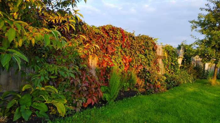 Взгляд скользит по бархатистой зелени, которая, словно заклинание, превращается в буйство осени на ветвях. Забор — это полотно художника, где природа рисует акварели времени, перебирая оттенки от густого изумрудного до пламенеющего багряного. Свет закатного солнца ложится на листву, как нежный поцелуй, вызывая легкую грусть о мимолётности лета. Вдали слышен шепот ветра, приносящего полузабытую песню деревьев, которые помнят больше, чем мы могли бы знать. Кажется, что мир замер в гармонии этого странного антагонизма — жизни и неизбежного прохождения её в вечное многоцветие красоты. И в этой тишине, под аккомпанемент шорохов, мы слышим нежную симфонию природы. Растительность, дышащая жизнью, становится деликатным напоминанием о тайном процессе бесконечного обновления, охватывающего всё живое и неживое.