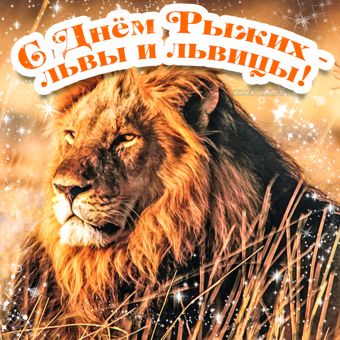 Взгляд льва, гордого властелина саванн, полон величия и тишины, несущих себя через жаркое солнечное сияние. Его рыжая грива, будто языки пламени, танцует на фоне бескрайнего саваннового поля, сурово обозначенного пыльными стеблями травы. Поблёскивающие блики и звёздное сияние, словно волшебные дары, дополнительно подчеркивают его царственное обличие. Над всем плывет надпись, подобная фанфаре: "С Днём Рыжих — львы и львицы!", мелодично отзывающаяся в памяти, как древние хроники величия. Это праздник огня, символ вечного стремления к свободе и дикости. Каждый звук превращается в песнь саванн, каждая деталь — шанс на осмысление природы собственной значимости в мире, полном загадок и тайн. Лев — он здесь для того, чтобы напомнить о силе внутреннего огня, что горит во всех нас, вызывая океаны радости и бесконечности.