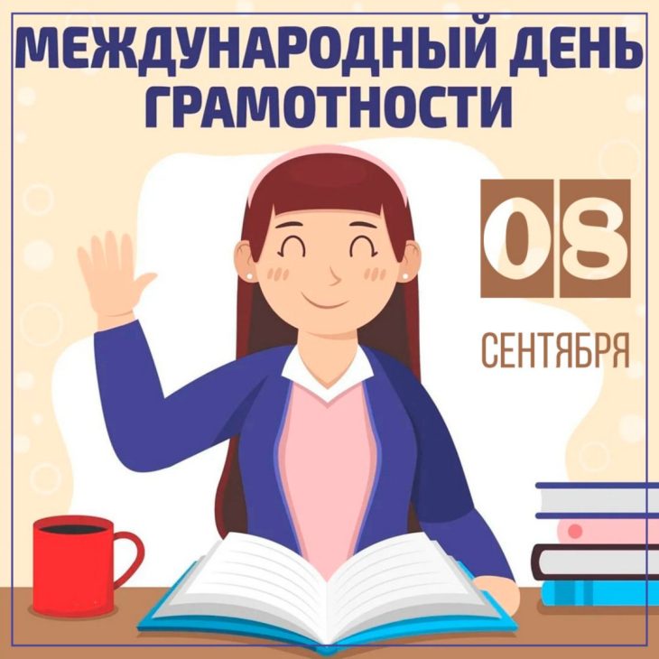 В мягком свете утра, словно распахивающий объятия мир, девушка приветливо улыбается нам с картинки. Её поднятая рука символизирует не просто жест приветствия, а торжество знания и восприятия. Перед ней книга, символ мудрости, лежит открытой, как приглашение ко всем тайнам вселенной. Листья страниц напоминают крылья, готовые унести её на край света, где слова превращаются в звуки, истории и мечты. Взгляд её добр, и в нём - уверенность, что каждый день - это новое открытие. 8 сентября на картинке - не просто дата, а напоминание о важности грамоты, управляя которой мы становимся мастерами собственного рассказа. Всё здесь дышит спокойствием и неподдельной радостью тех, кто умеет читать между строк. Возле неё кружка, возможно, наполненная запахом свежего кофе или утреннего чая, как обязательный атрибут спокойных рассветов, когда мысли начинают свой танец. Книги на заднем плане будто стражи, бережно охраняют свои тайны, готовы раскрыться только по первому зову. Всё вокруг наполнено жаждой знаний, стремлением к свету, который освещает самые дальние уголки нашего разума.