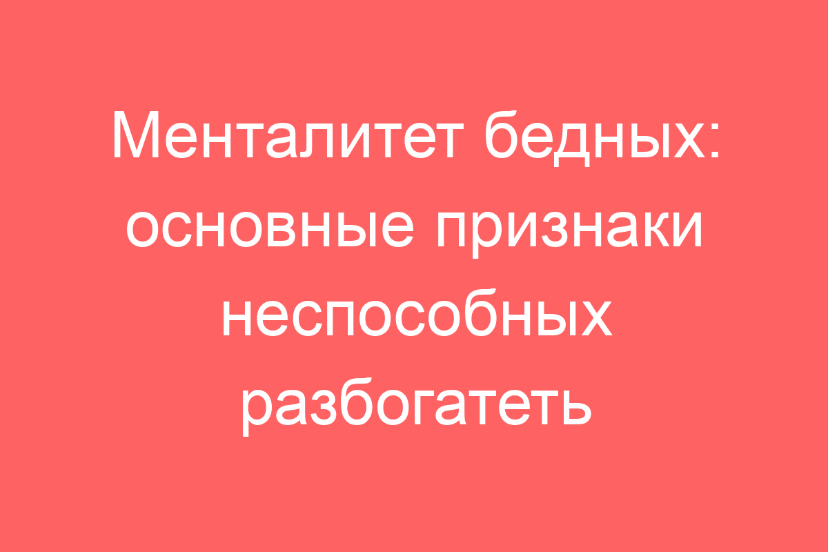 Менталитет бедных: основные признаки неспособных разбогатеть