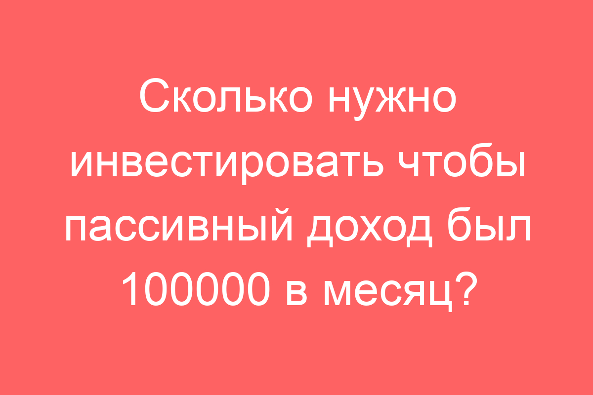Сколько нужно инвестировать чтобы пассивный доход был 100000 в месяц?