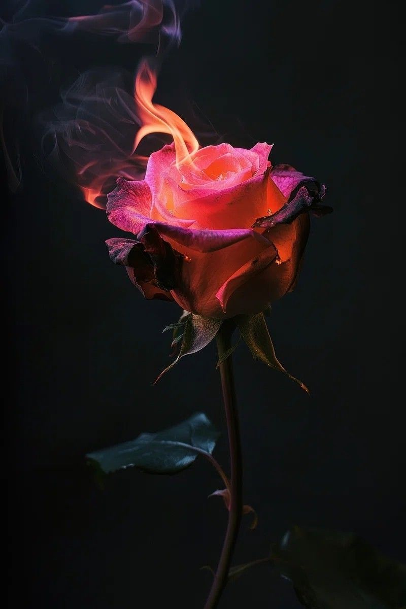 В бескрайнем мраке ночи, словно призрак, одиноко пылает роза — розовое пламя, воплощающее страсть и трагедию одновременно. Огненные языки, восставшие из сердцевины, несут в себе загадочную силу, вечный танец жизни и смерти. Этой магии подвластны лишь самые стойкие, те, кто не боится исчезнуть в собственном сиянии. Тени трепещут на лепестках, будто пережитые мечты, выжженные временем, оставившие тонкий аромат старых загадок. Нежные, порывистые линии света нежно играют на поверхности, обнажая противоречие природы — цветок, воплощающий хрупкость, и огонь, символизирующий мощь. Какими танцами захвачены эти доли секунд, когда гладкая текстура лепестков сталкивается с жгучей эпопеей пламени? Каждый вдох этой розы подобен последнему вздоху влюбленного, плененный красотой и болью собственного существования, шепотом рассказывая о страсти, которую никогда не удастся потушить.