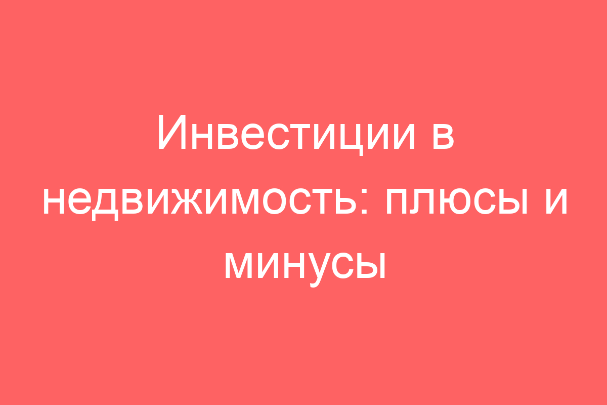 Инвестиции в недвижимость: плюсы и минусы