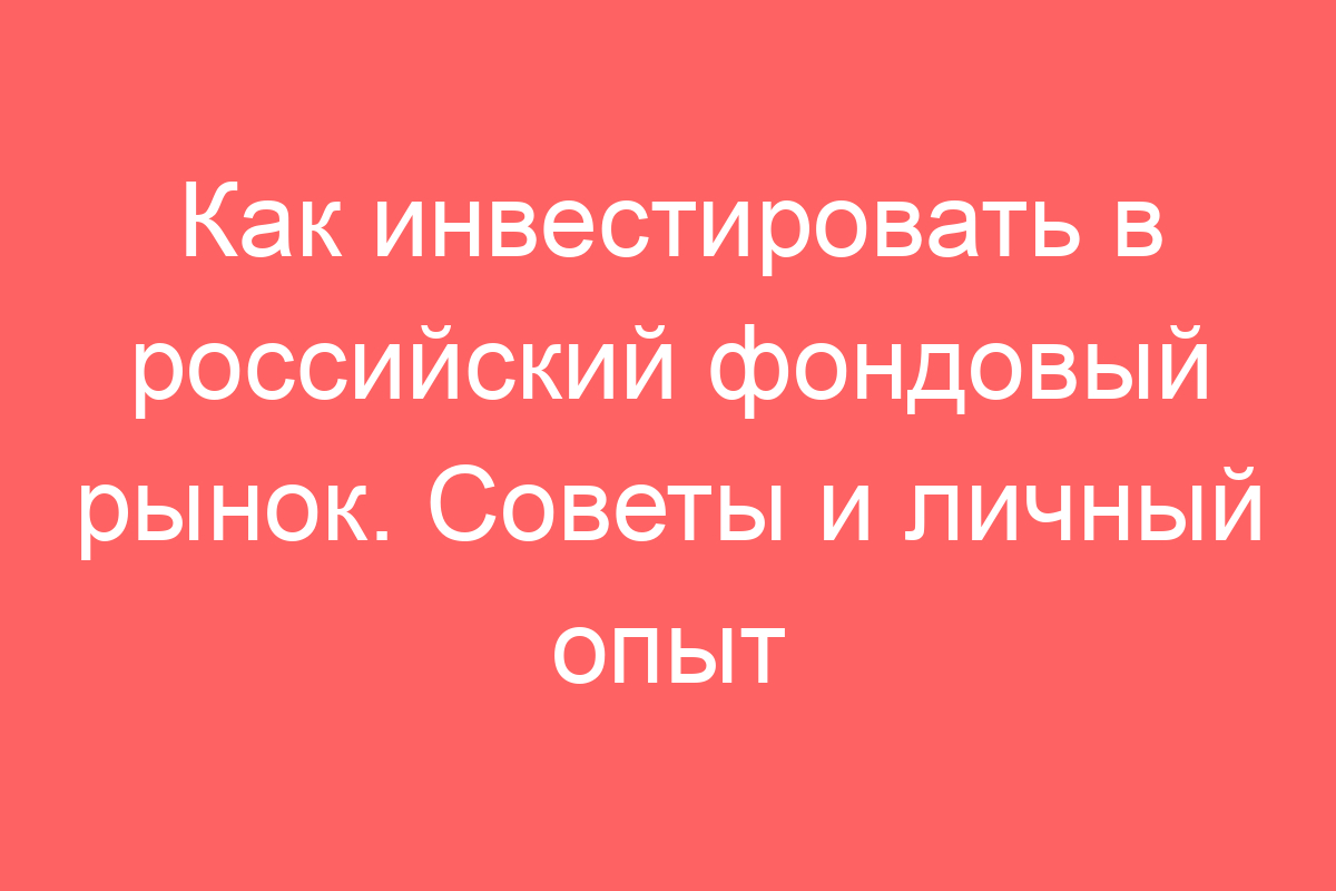 Как инвестировать в российский фондовый рынок. Советы и личный опыт
