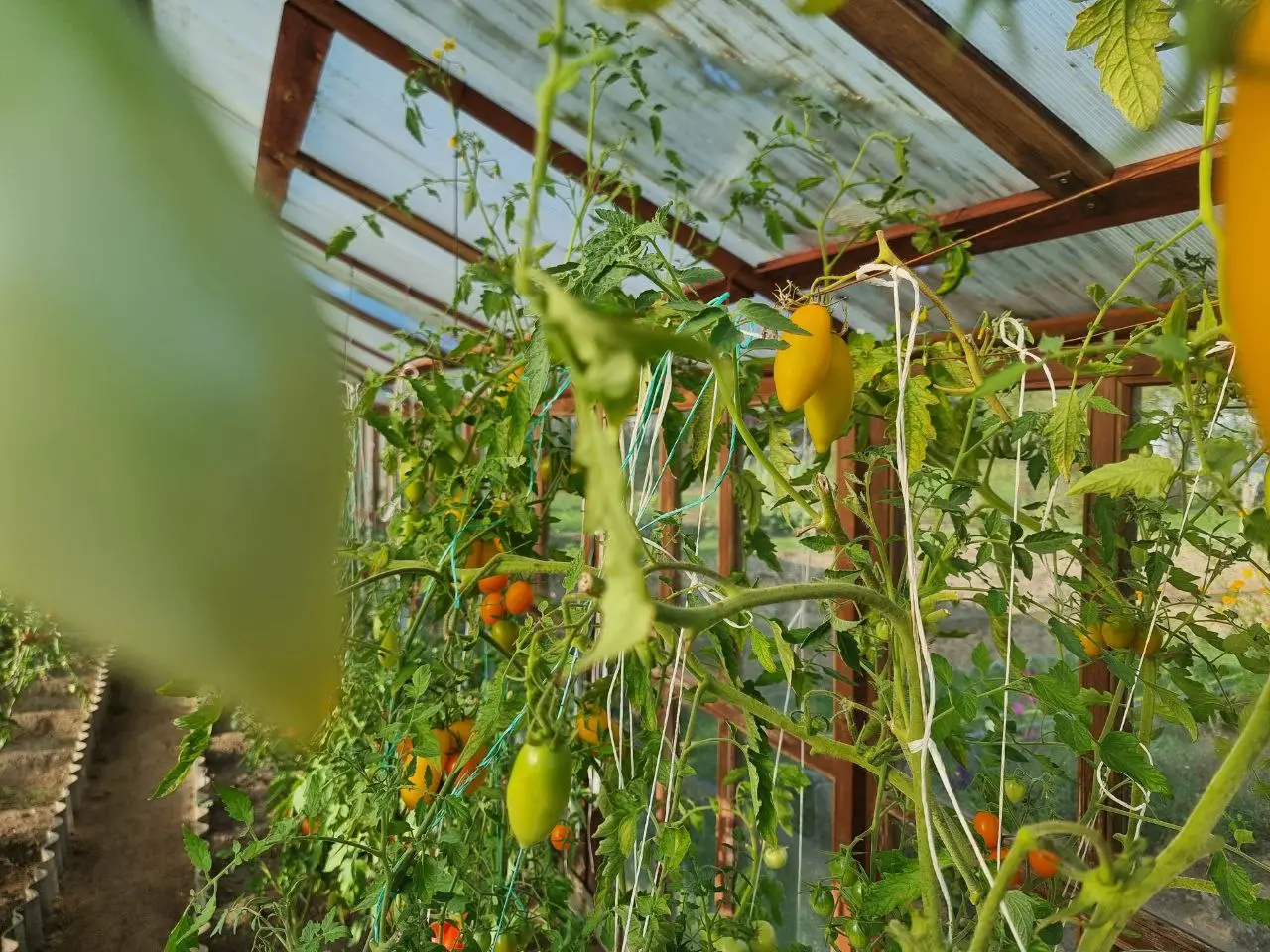 Там, где маятник дня замирает, в часовне из стекла и дерева, тянутся к свету томаты, словно молчаливые катитары зелёного культа. Янтарные блики, изломанные стёклами теплицы, играют на их телах таинственными рунами. В тихом шепоте зелёных листьев слышится старинная песнь плодородия, летняя сага, где ноты солнечного света и тумана творят симфонию роста и ожидания. И в этом тихом раю, каждая ягода - это сакральный обет осени, обещание полных корзин и щедрых пиров. Руки времени, плетущие лозы, сделали здесь дань жизни и процветания не только возможной, но и неизбежной, ибо здесь, в этой уютной оранжерее, сон становится реальностью, а мечта — сутью каждого утра.