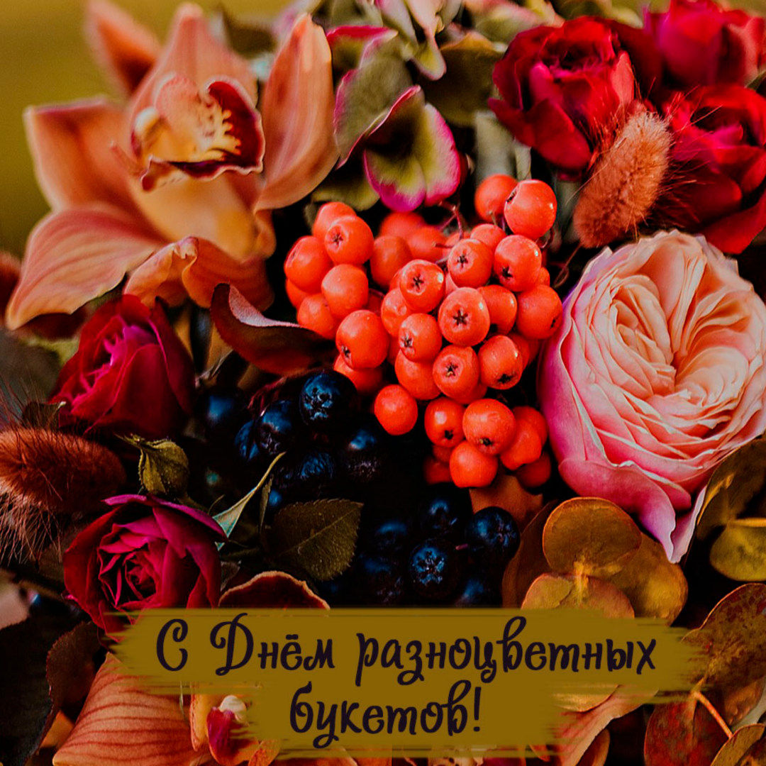 В тавтологии цветов и ягод оживает чувство праздника. Букет — как картина, в котором эмоции, подобно кисти мастера, пишут свои маски. Роза, словно капля утренней росы, раскрывается порывом нежного тепла. Рябина, одеваясь в огненные мантии, напоминает осеннее золото листвы. Каждая ягода — нота в симфонии, где ароматы и цвета сливаются в нежную какофонию. Под этими хитросплетениями прячется тайна, шепчущая о незримой гармонии мира. Голос за кадром, приглашая в чарующее танго палитры, произносит слова, искрящиеся, как бокалы влюблённых, — с Днём разноцветных букетов! И этот шёпот далёкой музыки рождает меланхолические вспышки воспоминаний о ярких страницах уходящего времени.