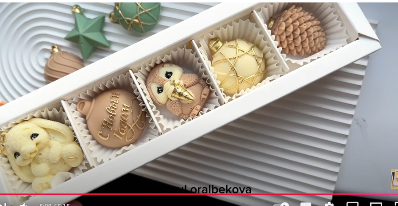 Передо мной лежит изысканный набор сладостей, олицетворяющий эхо грядущих праздников. Белоснежные и кремовые творения выстроены в ряд, словно маленькие алтарики вкуса. В их нежных формах и тонких узорах скрыта история о северных сказках, где зайцы, совы и шишки становятся частью ритуала зимнего волшебства. В центре внимания податливое шоколадное переплетение слов, как застывший привет от Деда Мороза, приглашение в край, где все мечты обретают форму и текстуру. На заднем плане мерцают звезды и шишки, играющие в прятки с полусветом комнаты, словно образы из новогодних сказок. Здесь сладости становятся письмом во вселенную — письмом, полным нежности и ожидания чистоты зимы, исполненной радости и детских улыбок.