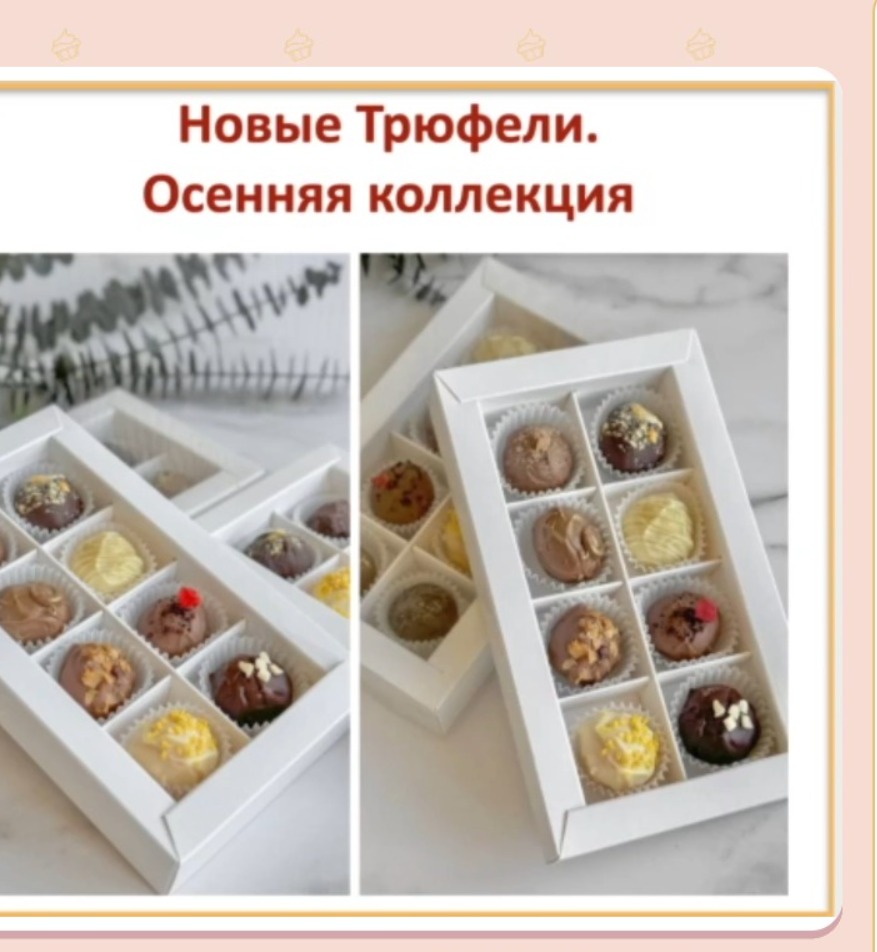 Белоснежные коробки открыты, как страницы новой книги, где каждая глава посвящена восхитительной роскоши шоколадных трюфелей. Нежные осенние оттенки — от золотистого до бордового — словно тихий шорох опавших листьев, отражаются в мягких, приглушённых оттенках шоколада. Надпись «Новые Трюфели. Осенняя коллекция» звучит не как реклама, а как обещание встречи с загадочным миром вкусов и текстур. Каждый трюфель — это маленькая вселенная, наполненная ароматами пряностей, хрустом орехов и бликом благородного шоколада. Фон, как тихий лесной густов, скрывает свою мудрость и свои секреты в каждом движении, слышно листвой, шелестящей в ритме тривоежек. Где-то вдалеке осенняя улица говорит о прохладе, но здесь, в этой коробке, тепло и уют. Закрой глаза и представь, как сладость растворяется на языке, оставляя за собой шлейф золотой осени.