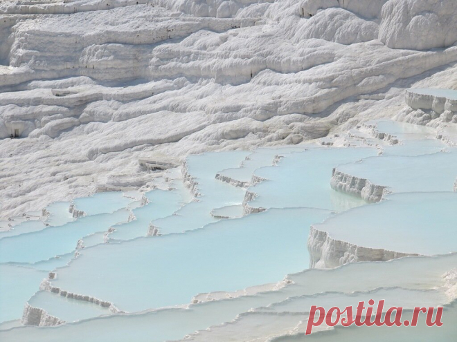 Навсегда застывший в белизне безмолвный бассейн времени, где небо словно смешалось с вершинами облаков, принеся прохладную лазурь к ногам путника. Изгибы камня, мягкие и гладкие, как белоснежные простыни, наполняют это место ощущением невыразимо спокойного миража. Под светом, таинственно мягким и отражающим, танцуют непременно призрачные тени, словно воспоминания о давно прожитых днях, и каждая задержившаяся во взгляде складка является немым свидетелем прошедших эпох. Невозможно не услышать шёпот истории в каждом извилистом камне. Памуккале — навеки обрамлённый рамой из мраморных хребтов, это место бережно охраняет свои тайны от посторонних взглядов, оставляя за собой лишь эхо шагов, растворяющееся в далёком и бесконечном. Это больше, чем пейзаж — это застывшее дыхание земли, которое, не двигаясь, рассказывает о вечности.