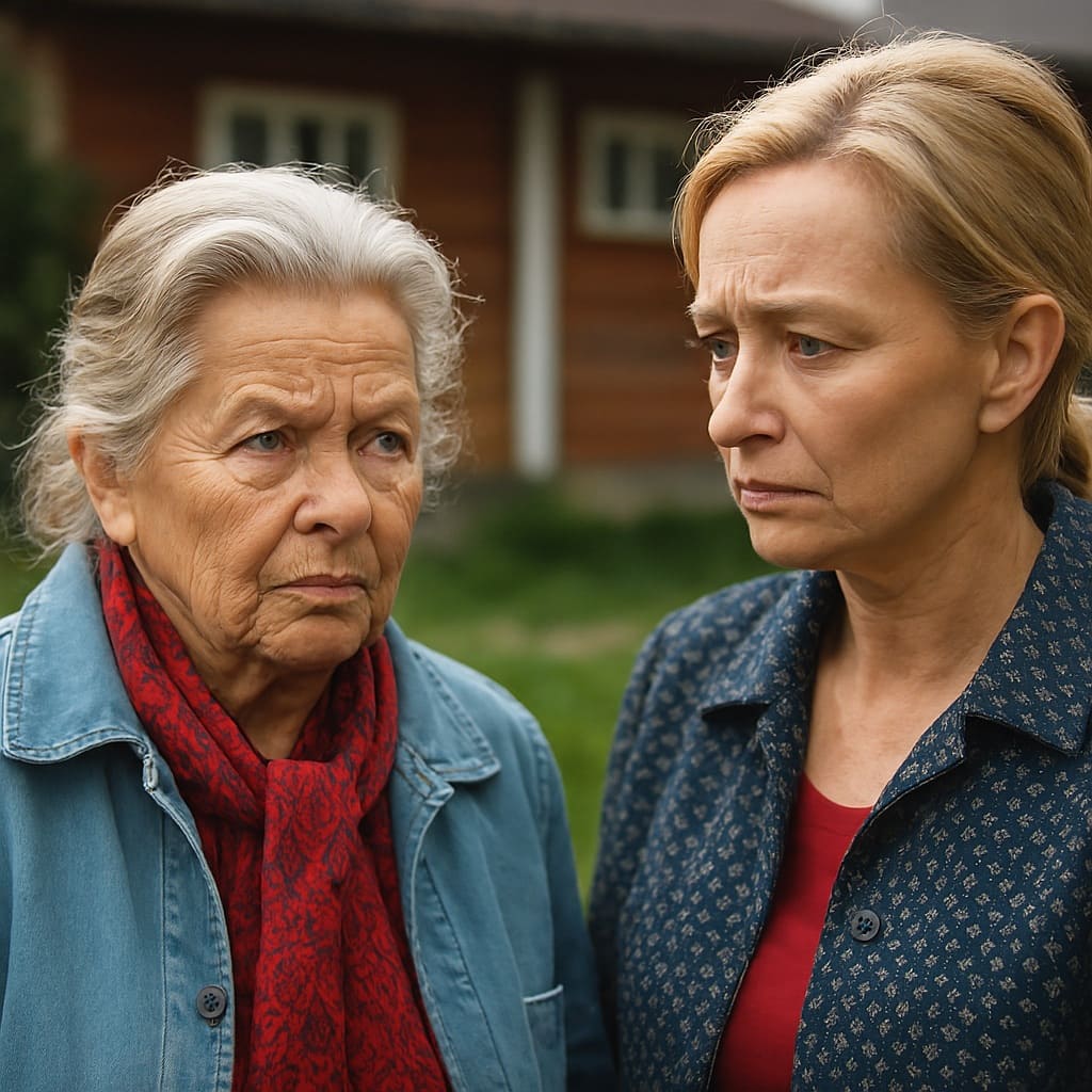 Ветхий дом, окутанный зеленью, словно старый свидетель ушедших времён, стоит фоном для двух женских фигур, закованных в цепи немой драмы. Взгляд пожилой женщины пронизан опытом, как страницы пыльной книги, прочитанной сотни раз. Её лицо, обрамлённое серебром волос, словно карта прошлого с измерениями жизни в каждой линии. Рядом с ней женщина моложе — её лицо освещено задумчивостью и тревогой, как если бы она увидела разветвление дорог, ведущих в разные направления. Тонкие клавиши невысказанных слов, невидимые мира подсознания, соединяют двух героинь в этом безмолвной сцене. Лёгкий ветер, шепчущий о сменах времён года, дополняет их молчаливый диалог велением природы — живым свидетельством протяжённого времени и родственной связи.