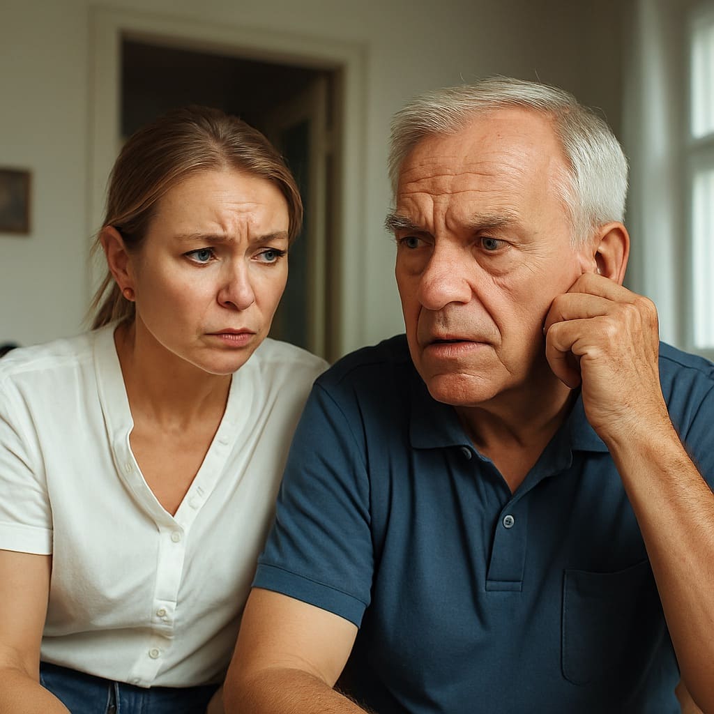 В тишине комнаты, где легкий свет проникает сквозь окно, он и она сидят рядом, погружённые в незримый разговор, который мимолётно проплыл над их головами, как облако на летнем небе. Морщины на лбу пожилого мужчины, погруженного в свои мысли, словно строки ещё не написанной книги. Женщина, находящаяся рядом, смотрит с тревогой и заботой, как персонаж классического романа, на грани разгадки великой тайны. Свет играет на их лицах, оттеняя внутренние переживания, как театр теней. Движение, которое едва ощутимо в ее наклонённой голове, говорит больше тысяч слов, ребус души, расшифровка которого требует терпения. Дом, казалось бы, санкционирует эту сцену своим молчаливым одобрением, распахнув двери к неограниченным коридорам размышлений и святости повседневного участия друг в друге.