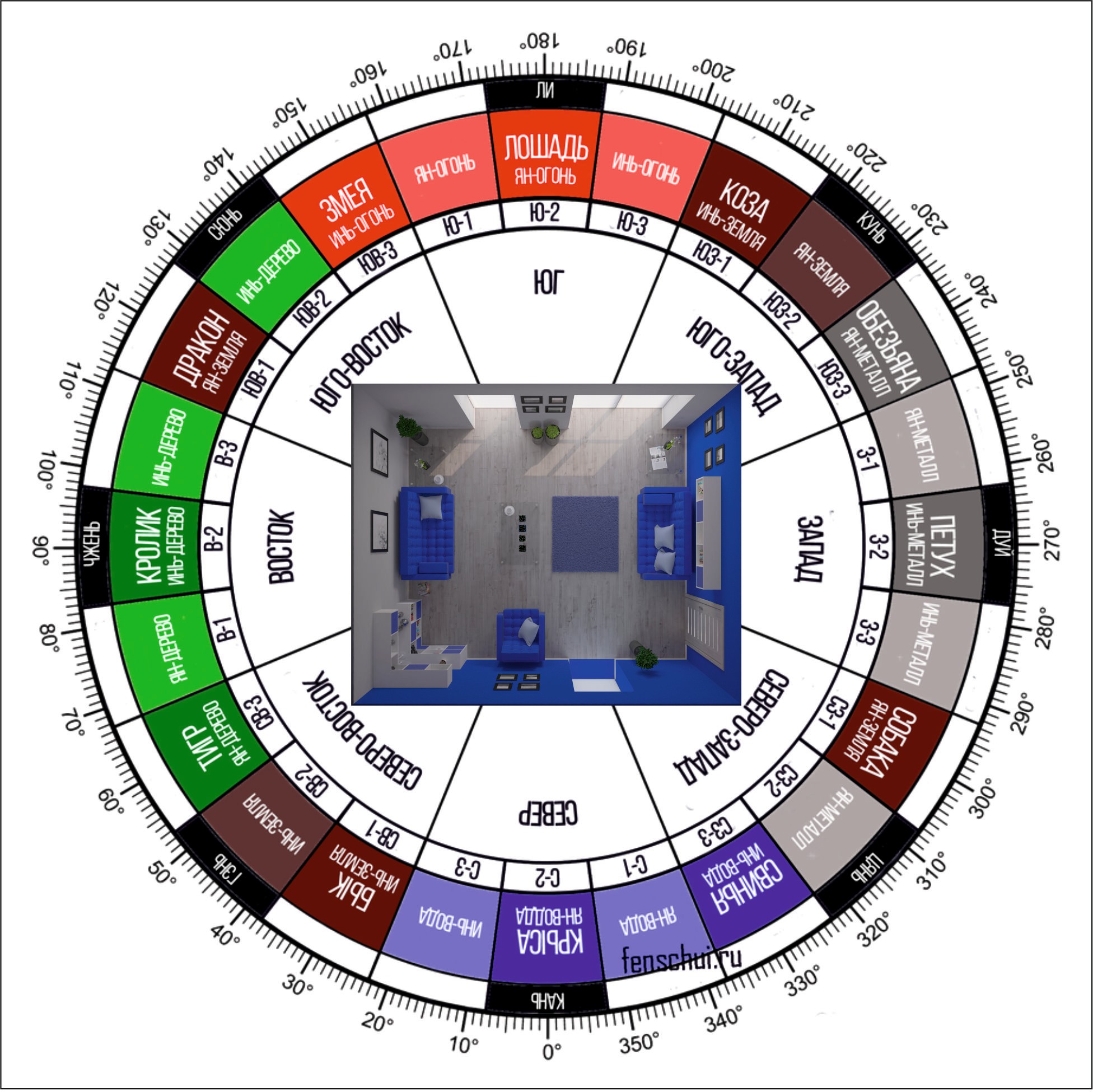 В центре этой окутанной символикой мандалы лежит комната, где голубые оттенки смешиваются с тенью древесных структур и ностальгией домашнего уюта. Она напоминает сцену из романа — здесь каждая мебель и драпировка рассказывает свою историю. По кругу, как в старинной карте звездного неба, расположены знаки, что шепчут о гармонии элементов и древних секретах фэншуй. Каждый сектор вокруг напоминает компас, направляющий мысли и энергии. Красные и зеленые цвета нарисованы не случайно — они говорят о движении из зимы в лето, из тревоги в спокойствие. Шепот Востока льется с удовольствием натянутой струны, в то время как Юг, насыщенный алым, зовет к действию. В ночь, когда луна освещает комнату, она превращается в мир отражений и световых загадок. Здесь сердце обретает покой, а разум находит путь домой.