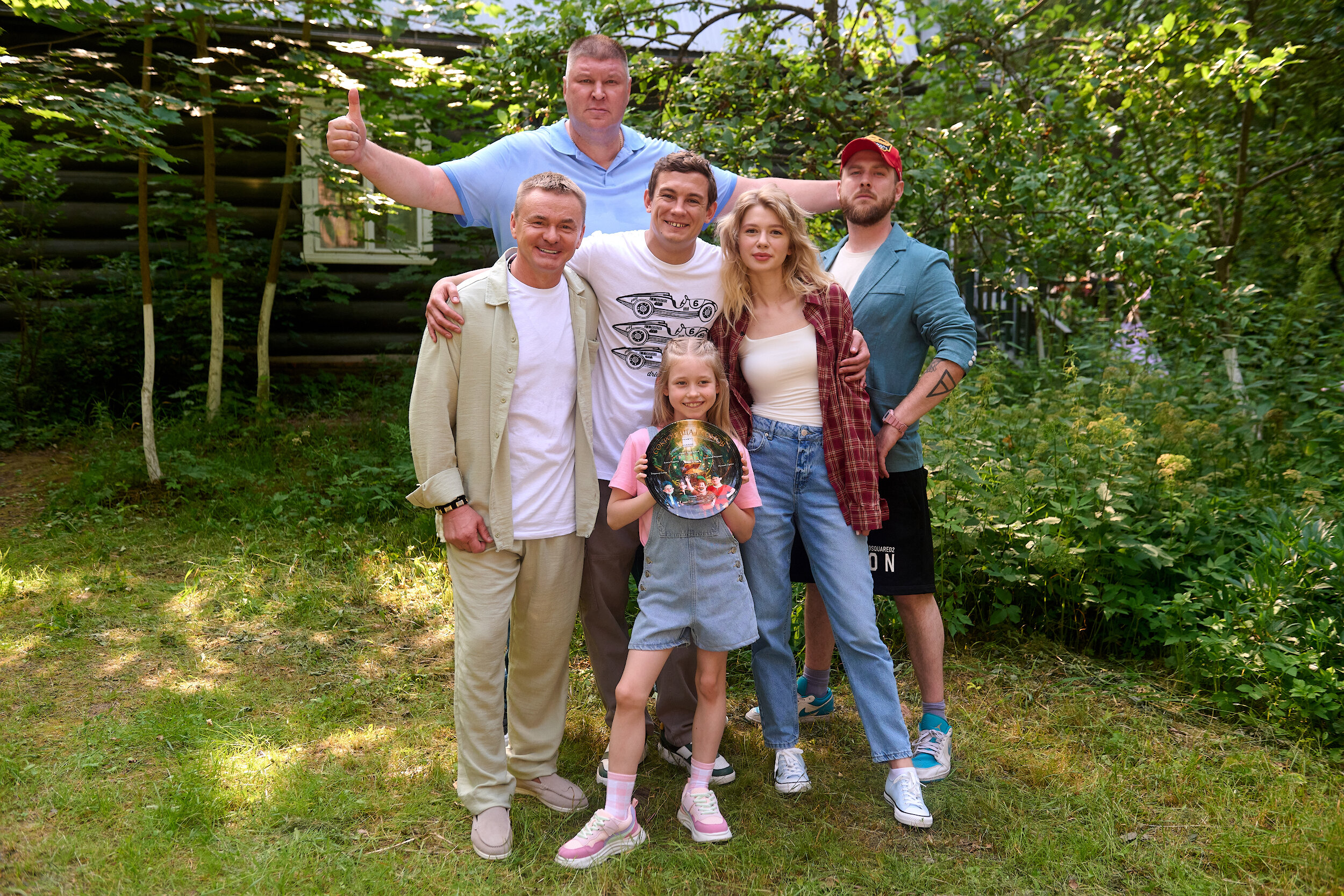 На зелёной лужайке, залитой светом утреннего солнца, собралась группа людей, словно из сцены давно забытого фильма о семье и искренних радостях. Щебет птиц ведьмаком пронизывает тишину, плавно спрыгнувшую с деревьев, словно старый друг, невидимый, но всегда в курсе всего происходящего. Мужчина в футболке, с поднятым вверх большим пальцем, напоминает о сигналах победы, необузданного мира возможностей, которые каждый из нас носит внутри. С ним рядом - собравшиеся здесь словно вокруг одного стола — неразлучная компания, в глазах которых читается что-то мягкое, тёплое, будто пламя старого камина. Рядом с взрослым миром, в окружении взрослых лиц, милая девочка держит в руках символ соседства детства и мечты. Старшая женщина в клетчатой рубашке, похожая на героиню романа, ей не хватает лишь томика слащавой дамской прозы в руках. И все вместе они — как разбивающая все преграды команда, обрамленная зелёной рамой природы, наследники безмятежного лета.