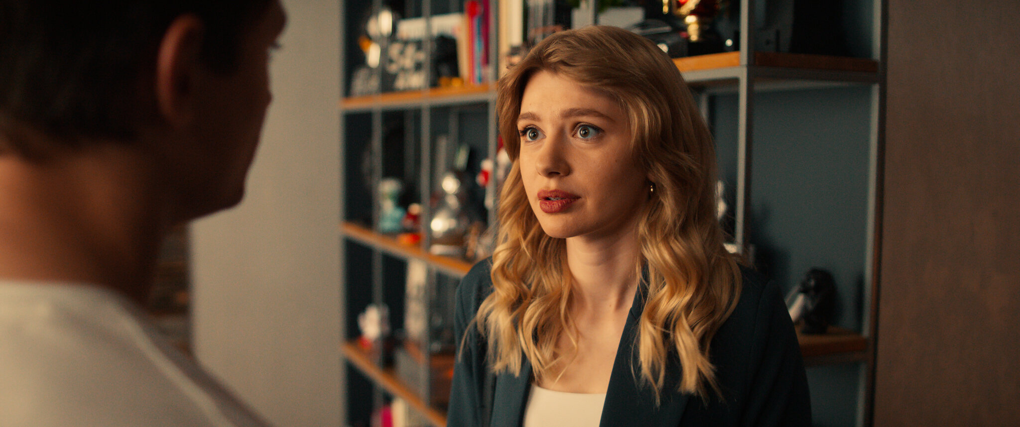 Тёплый свет, как будто утренние лучи солнца проникают через окно, растворяясь в дымке тишины. В комнате слышен лишь шелест страниц и едва уловимый аромат старых книг. Она стоит напротив него, золотистые волосы мягко обрамляют лицо, и её взгляд - откровенный и чуть настороженный. Их разговор словно паутина связывает их в этой уютной, немного пыльной библиотеке, где каждая полка хранит свои загадки. Книги на заднем плане будто наши воспоминания, тихо шепчут вразнобой, создавая фон для их диалога. В её глазах читается тихое удивление, точно она открыла новую страницу в книге, которую не ожидала найти в своей жизни. Даже свет приглушён, как будто он согласен, что здесь, в этом моменте, важна каждая деталь. Возможно, следующий шаг изменит всё - и это волнительное предчувствие висит в воздухе.