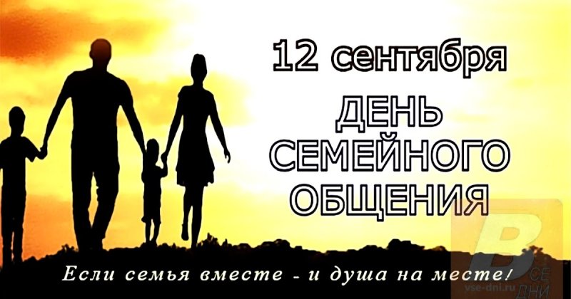 Под ярким, золотым светом заходящего солнца, на приглушённо-оранжевом фоне, вырисовываются фигуры семьи — четырех людей, золотая монета жизни. В их едином силуэте угадывается вселенская гармония — нежные прикосновения рук, невесомость шагов, такие крепкие узы, что могут бытиь только среди тех, кто делит вместе день за днём. В это мгновение, их очертания — это как перевод звуков детства сквозь слова наивные, безмолвные, голосами говорящие. И тут, подобно шёпоту ветвей, рождается мысль — "12 сентября. День семейного общения", как напоминание о том, что слова бывают сердцем, а не губами. В строке ниже вспыхивает мысль, что звук шагов на одном пути важнее, чем любые блага: "Если семья вместе — и душа на месте". Это не просто праздник, это евангелие заветов уютных вечеров и голосов домашних, сложенных, как пестрые ковры, рисунками милосердия.