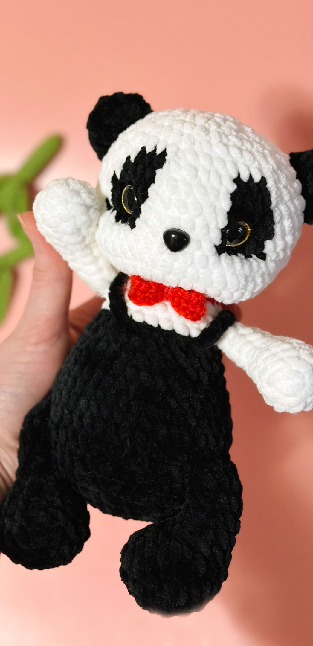 PDF Пара Панд крючком. FREE crochet pattern; Аmigurumi toy patterns. Амигуруми схемы и описания на русском. Вязаные игрушки и поделки своими руками #amimore - плюшевая панда, медведь, медвежонок панды из плюшевой пряжи, мишка.