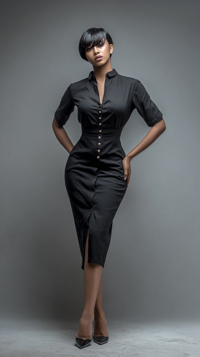 Элегантность в черном: образ с высоким воротником и изящными туфлями. Картинка из нейронной сети Миджорни - Midjourney примеры промтов - Форум ИИ о нейросетях - Yes Ai