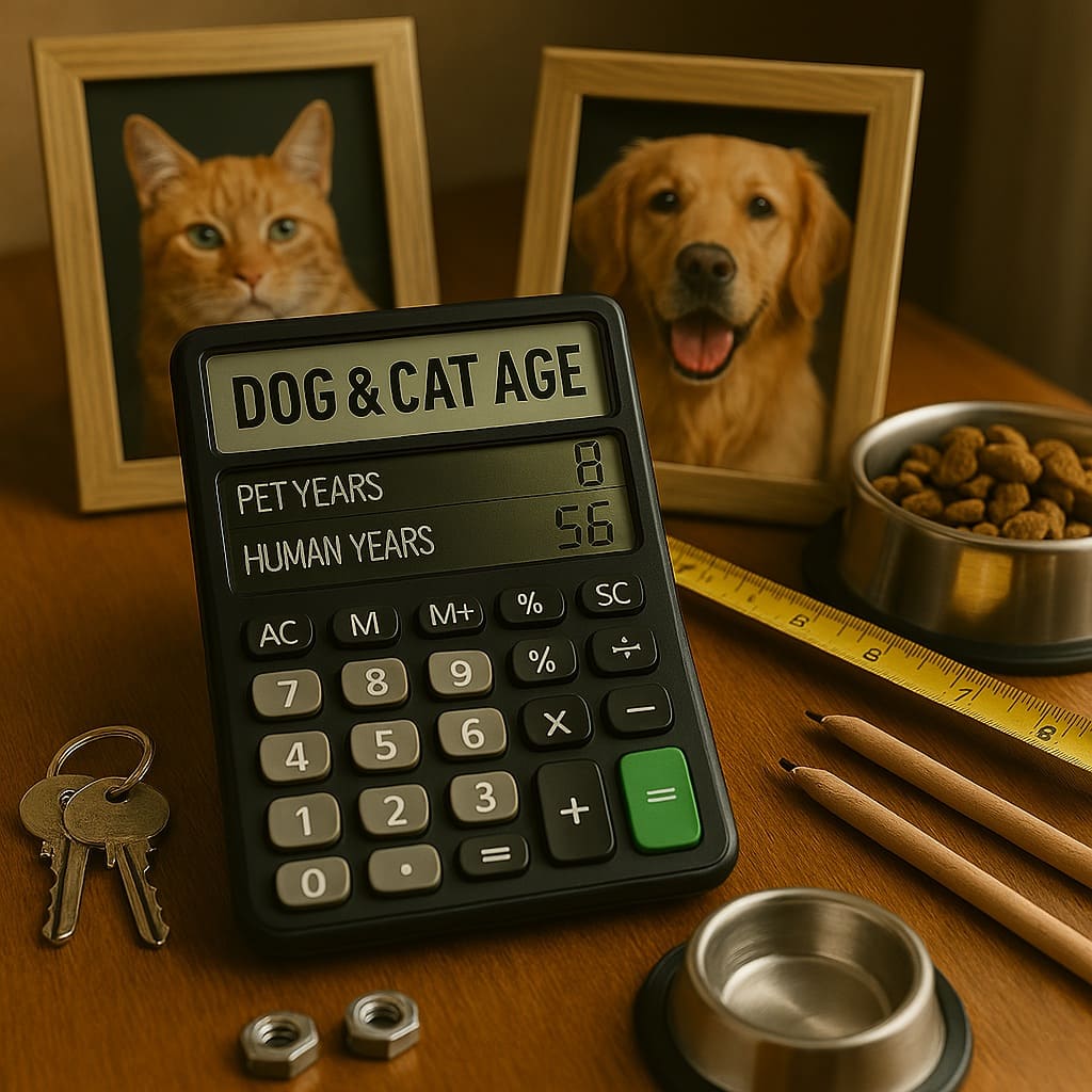 На деревянном столе, словно на сцене, разыгрывается трогательный этюд из жизни домашних питомцев. В центре композиции, как актер с табличкой на груди, стоит калькулятор, стремящийся уравнять годы собачьей и кошачьей жизни с человеческими измерениями вечности. На экране, как негласный приговор времени, высвечиваются цифры: восемь в мире кошки и пять и шесть десятых – в мире человеческом. Фотографии собак и котов, реплики нежности и преданности, обрамляют сцену, наполняя её золотистыми отблесками сентиментальности, от которых теплеет сердце. Рядом с калькулятором – ключи, карандаши и горсть корма, как символы повседневной рутины – тут каждый предмет со своим голосом говорит о заботе. Это мудрая сказка о счете времени, ожившая в простоте и красоте момента. Жизнь, казалось бы, спрятанная в математическом инструменте, на самом деле раскрывается во всей своей меланхоличной ясности.