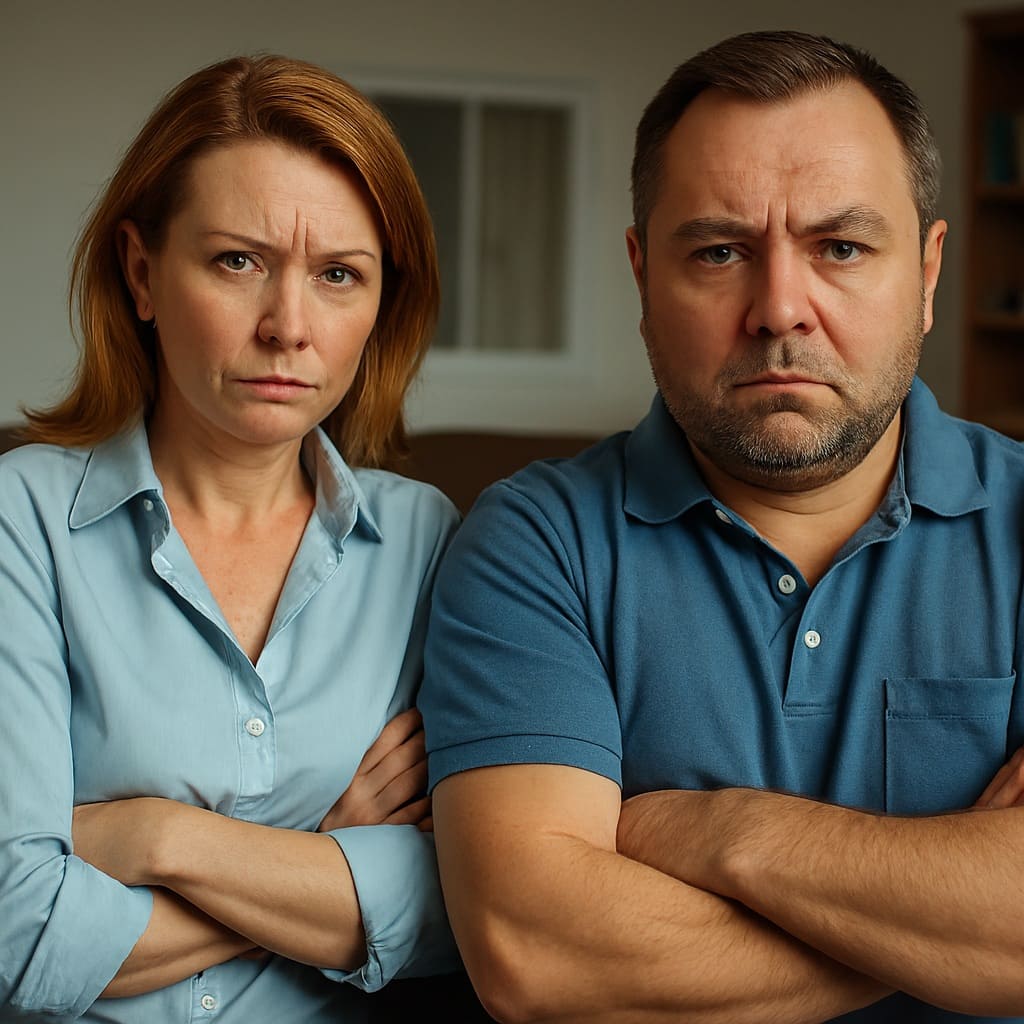 В комнате, где свет медленно омывает стены, лицо мужчины и женщины выражает решимость перед чем-то неизбежным. Их скрещённые руки — как баррикада, как призыв к внутреннему укреплению в миру, полном размышлений. Взгляды их пронизаны крепостью горящего металла, словно они всматриваются в горизонт своих собственных судеб, сталкиваясь с непреклонностью мира и собственной уязвимостью. Музыка тишины свивает уши, и это звучание — как мощный аккорд, диктующий правила надежды. В центре картины — не просто лица, это портрет вечного поиска утерянного времени, где каждый жест становится замысловатым символом неведанного будущего. Тонкие линии у глаз напоминают о пережитых днях, но за ними пробивается неугасимый свет надежды.