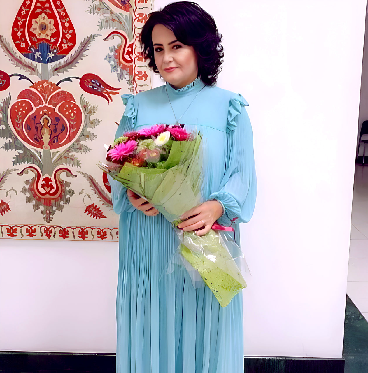 Яркая палитра цветущих красок расплескалась в её руках, как будто она несет саму весну. Бирюзовое платье словно робко вторит оттенкам солнечных лучей, наполняя собой пространство. Запах лилии и розы наполняет воздух, создавая невидимый ароматный ореол. Гобелен на стене позади – это загадочные символы прошлого, как напоминание о вечной природе красоты. Близкий момент тишины раскрывает счастье, простое и чистое, в каждый миг её взгляда. Это не просто фотография, это фрагмент из тихой книги, священно хранимой в глубине сердца. Здесь, в центре этой тихой симфонии, она дарит миру свое едва уловимое, но такое важное присутствие, словно мифическая героиня, чья миссия — разбудить радость в сердцах всех живых существ.