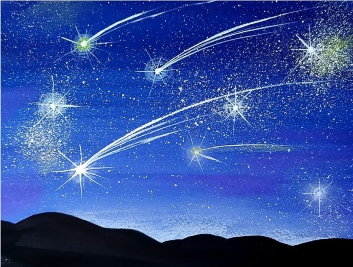 Ночное небо, превратившееся в поэтическую оду, раскинуло над землями свой звездный ковер. Словно тысяча невидимых художников разбрасывали сверкающие точки по безбрежной синеве, и кометы, похожие на серебряные стрелы, разрезали тишину своими длинными светоносными хвостами. Этот танец света окутывает ночные холмы мягким сиянием, как будто запечатленные в миге спящего мира, пробужденного звоном космоса. А внизу, мягкие силуэты гор принимают участие в этом вечном праздновании времени, являя собой гармонию природы и человеческих мечтаний. Где-то среди этих невероятных мистерий пульсирует энергия всего сущего, смешивающая в себе отзвук древних мифов и тихие мечты о будущем. В ликовании мгновения возникает ощущение, что время остановилось, позволяя каждому почувствовать в себе частицу звезды.