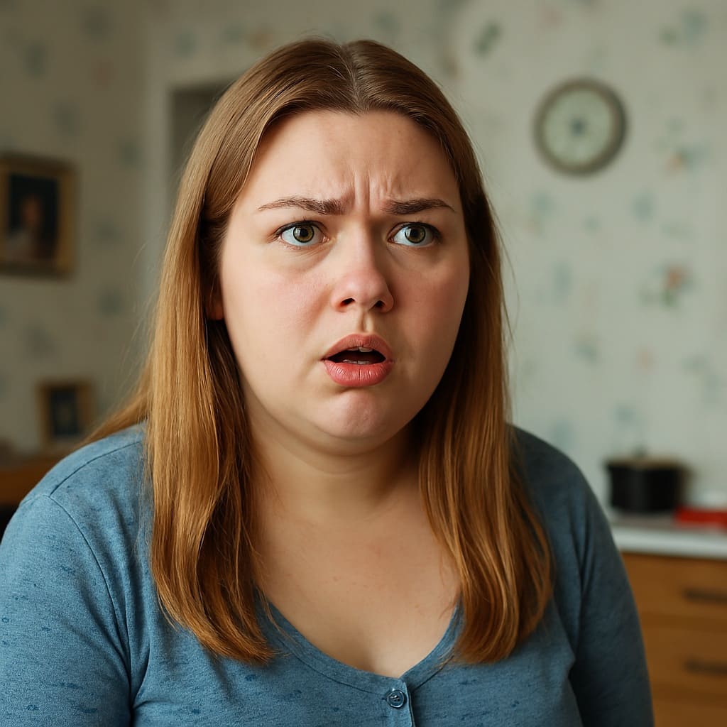 В её глазах застыл удивленный мир, в котором простая кухня превращается в театр абсурда. Свет, струящийся из окна, ласкает стены с мечтательной нежностью, обветшавшие часы на стене шепчут о забытых обещаниях. Каждый предмет кажется живым, способным заговорить в любую минуту. Её удивлённое выражение – словно обрывок стихотворения, рифмующийся с пронизывающей тишиной утра. В этом взгляде кроется целая история – история надежд, разочарований, внутренних диалогов и несказанных слов. Внутренний монолог звучит как тихий рояль в начале медленной пьесы. Тем временем, за кадром, улица дышит влажным ароматом весеннего дождя, и кажется, что если прислушаться, можно уловить музыку горожан, спешащих навстречу своим воспоминаниям.