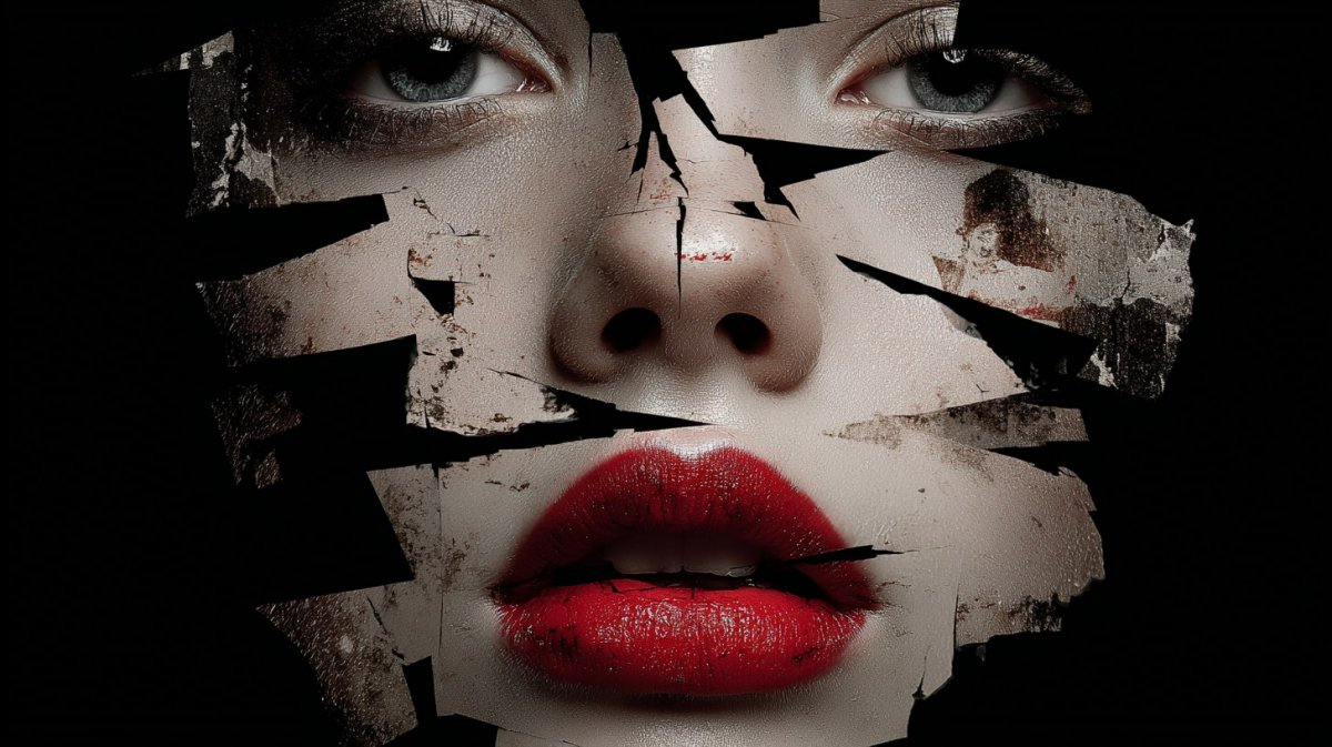 Лицо в красной помаде: коллаж эмоций и контрастов. Картинка из нейросети Midjourney - Midjourney примеры промтов - Форум ИИ о нейросетях - Yes Ai
