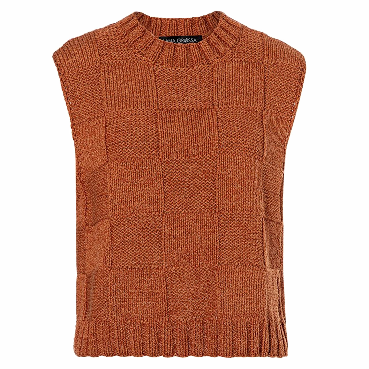 Этот оранжево-коричневый, как багряный закат в сердце осени, жилет переносит нас в мир текстур и уюта. Его вязка, словно картина старинного мастера, складывается в геометрическую симфонию, где каждая петля таит историю о теплых вечерах у камина и шелесте палых листьев под ногами. Шерстяная ткань напоминает о хлебных полях, выжженных солнцем, и внезапно хочется прикоснуться, ощутить её почти физически, как прикосновение ветра на склоне холма. На фоне молчаливого внутреннего монолога, свет кается медленно проникающим через оконное стекло в тихой комнате, нежно опаляя фактуры. Эти мягкие детали заключают в себе истинный мир покоя и тепла. Он как голос города на рассвете, как шёпот автобусной станции, пустой, но полной ожиданий.