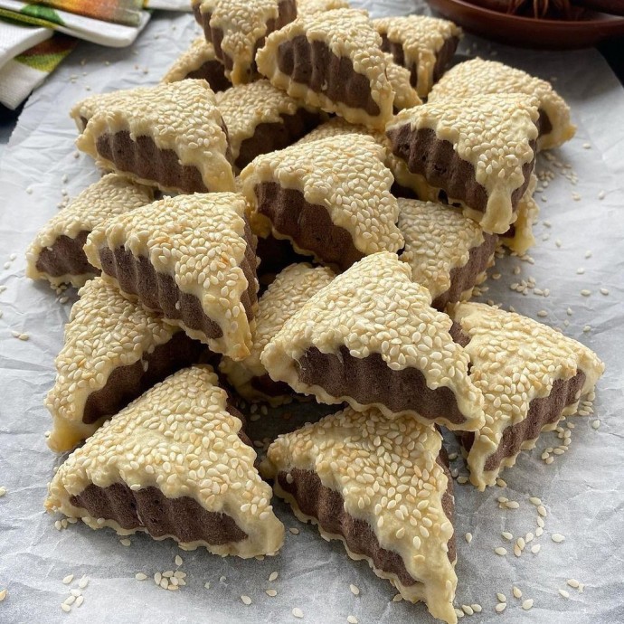 Пёстрый калейдоскоп, где уютно прячется аромат Востока, сыплет зернышками времени на белоснежное полотно бумаги. Словно крошечные пирамиды, треугольные кусочки, облачённые в золотистые одежды семян кунжута, рассказывают истории о далёких странах и караванах по шелковым тропам. Каждый треугольник подобен маленькой загадке, сладкой на вкус и обволакивающей в тонкий уют безмятежности. Разноцветные мечты, сложенные в форме сот, шепчут о теплых вечерах на знойных террасах, где запах корицы и какао переносит в мир, где магия реальна. В каждом кусочке заключено слово, и это слово — счастье, простое, но такое необходимое, как первый луч солнца на холодной земле. И вот эти треугольные осколки изящества, украшающие стол, словно фреска, зовут нас на пиршество восхищения, обещая утреннее солнце на наших губах и в сердцах.