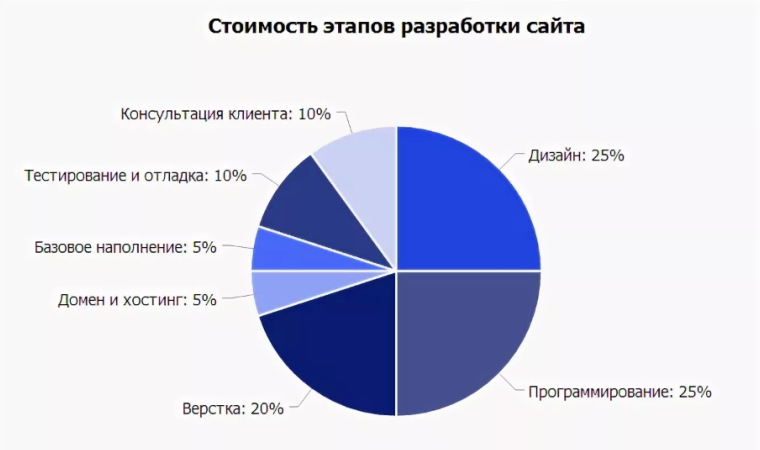 Пирог диаграммы, будто колдовской круг, погружает в ритуал творения цифровых миров. Здесь, в палитре оттенков синего, словно на акварели модерниста, разворачивается космический танец разработки. Дизайн в роли дерзкого архитектора будущего погружает зрителя в очарованную тишину, покоряющую своей строгостью 25% присутствия. На фронте программирования, балансируя на острие кода, светотехнически выстроен лабиринт – 25% инженерной поэзии. Верстка ласкает, как виртуозные строки стихов – в ней 20% ритма и гармонии. Консультация клиента и отладочные мечты занимают по 10%, шепчут в полумраке где-то вдали. Хранители баз и доменов затаились в 5% местах. Все, как в аккуратном пазле бытия, художественная мелодия которой плетётся из кусочков, каждая деталь которого, как искрящийся осколок, играет в своей меланхоличной симфонии.